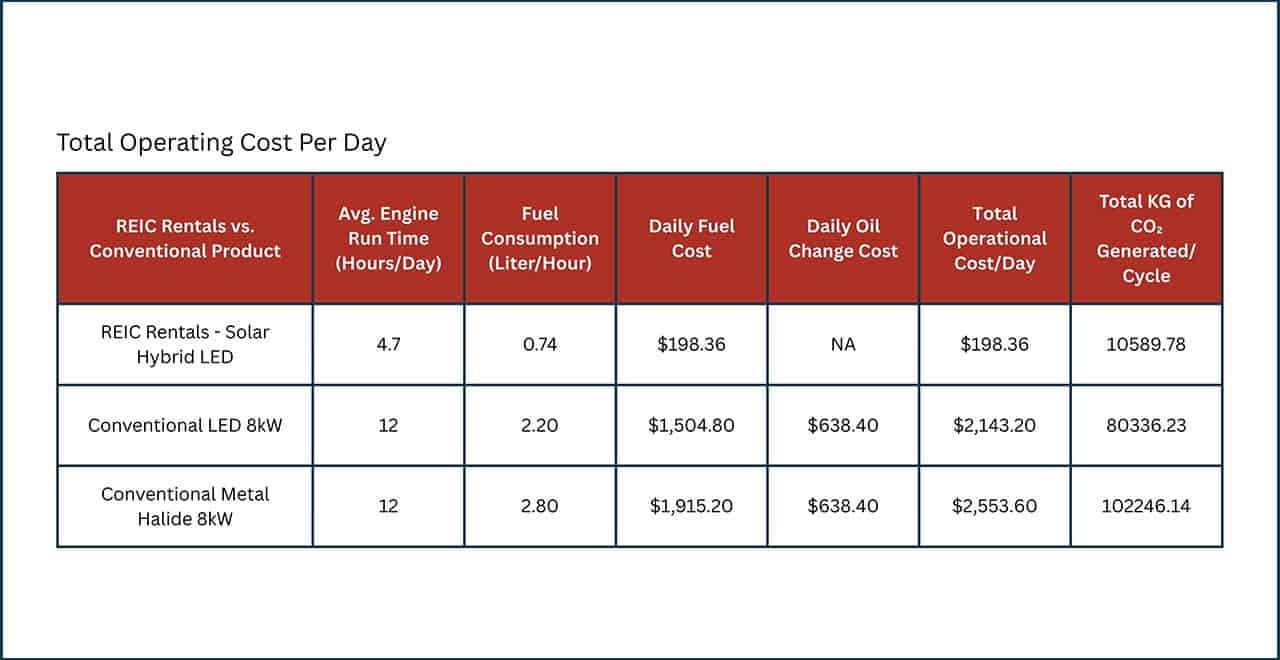 REIC Rentals deployed an initial fleet of 38 Solar Hybrid Light Towers to the project site. This case study captures performance and cost data collected across all 38 units over a 12-month operating cycle.
